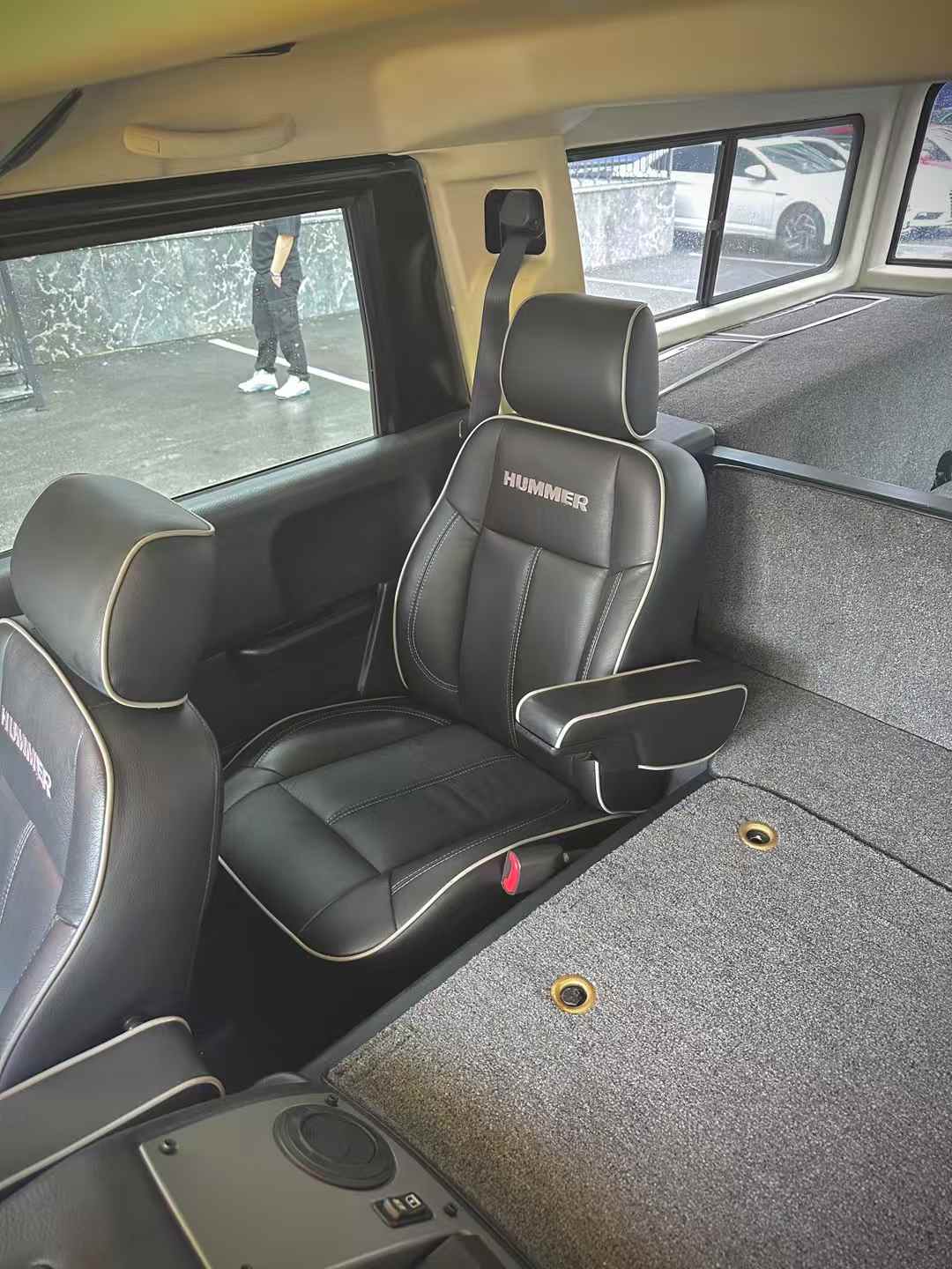 悍马H1的基因源自美军HMMWV(高机动性多用途轮式车辆),其民用化设计保留了军车90%的原始架构。独特的铝合金与钢材混合车身、四轮独立悬挂系统,以及410mm的最小离地间隙,赋予其碾压地形的资本。72°接近角与37.5°离去角远超现代主流越野车,即使面对56cm高的垂直障碍或76cm深的涉水路段,也能如履平地。17英寸轮毂搭配37英寸全地形轮胎,配合中央轮胎充气系统(CTIS),驾驶者可在冰雪、沙地等场景中实时调整胎压,进一步强化通过性。