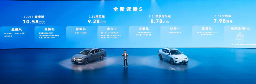 速腾入华20年,四代演进,450万用户,月销仍能破2万——这个数据本身就说明问题。全新速腾S,7.98万元起售,定价策略很清晰:守住国民家轿的基本盘。