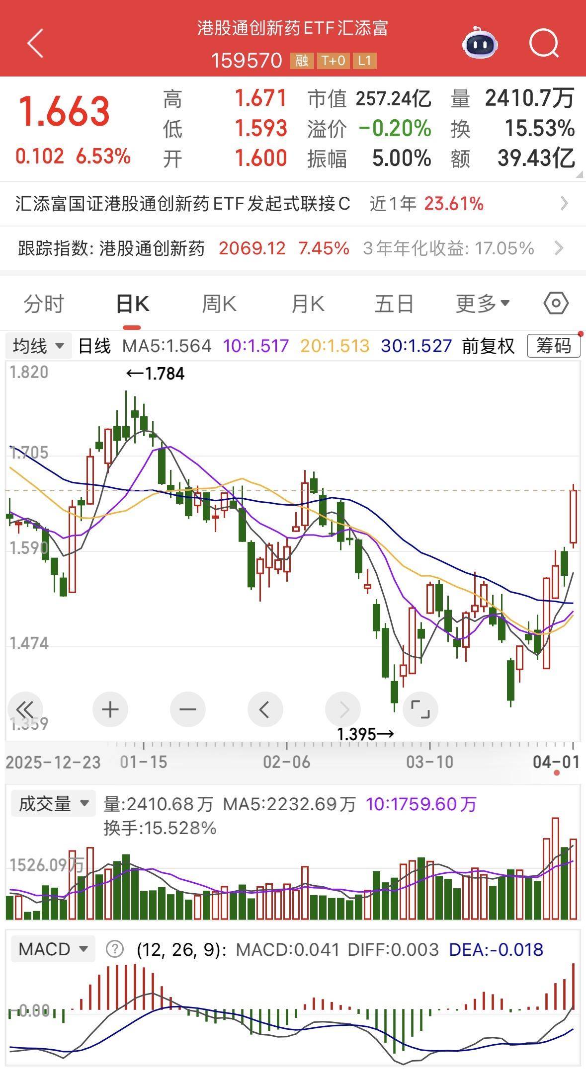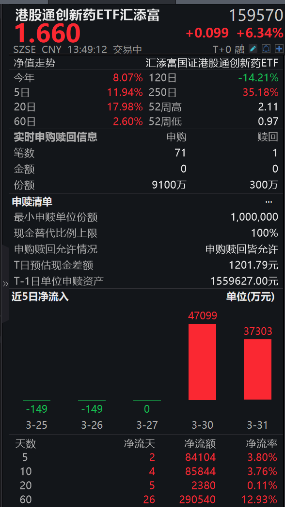 4月开门红!港股通创新药ETF汇添富(159570)大涨超6%,基金规模超242亿元位同类第1