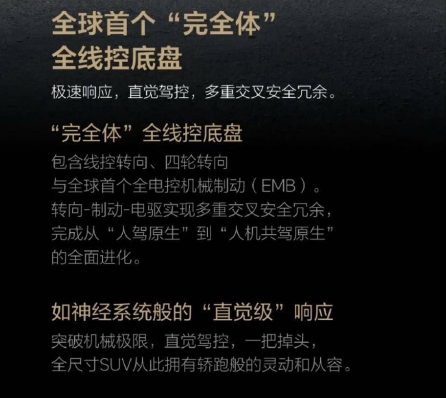 800V高压平台、全主动悬架,以及最核心的卖点——全球首个“完全体”全线控底盘。