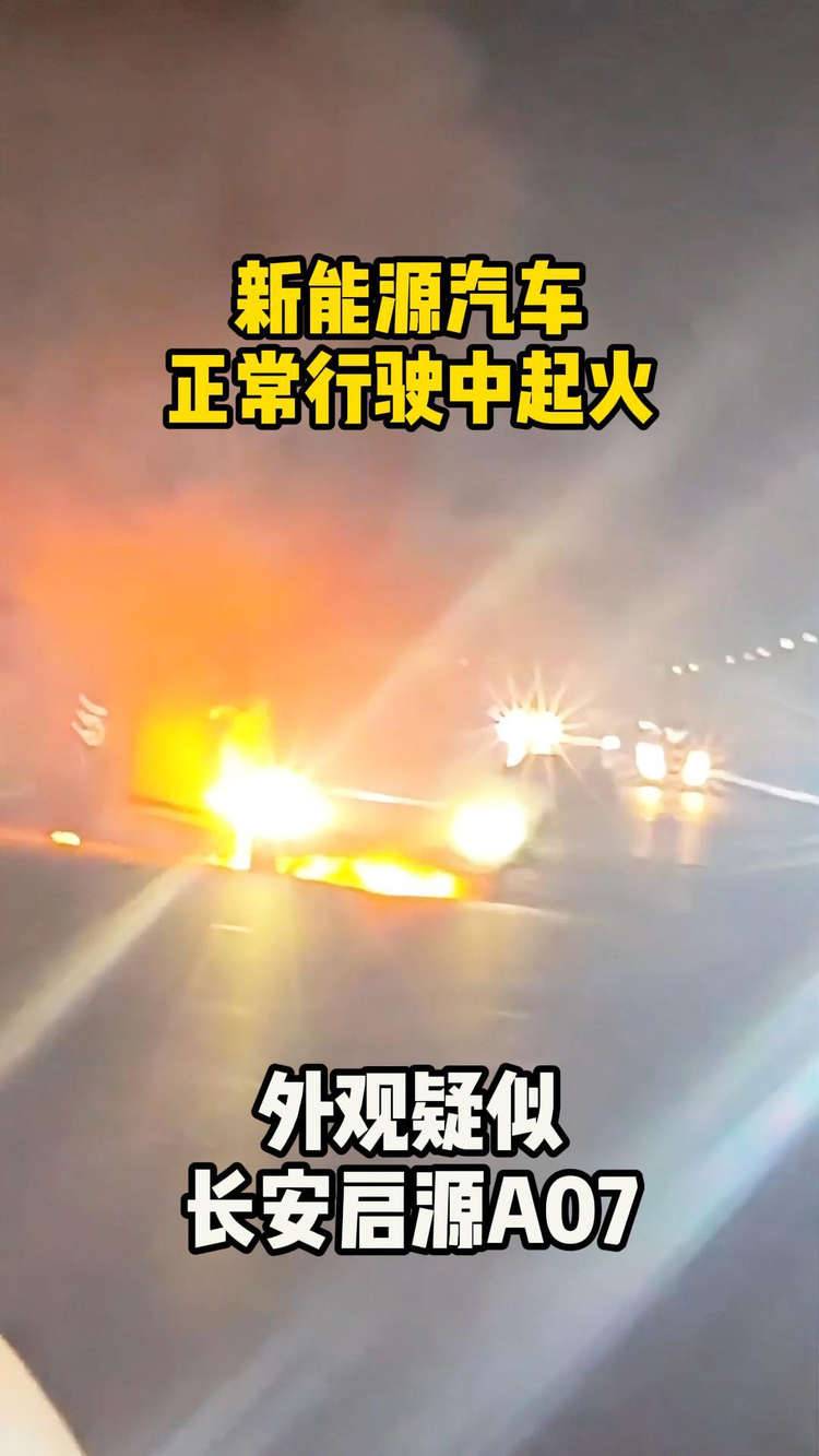 一辆新能源汽车行驶途中起火,外观疑似长安启源A07