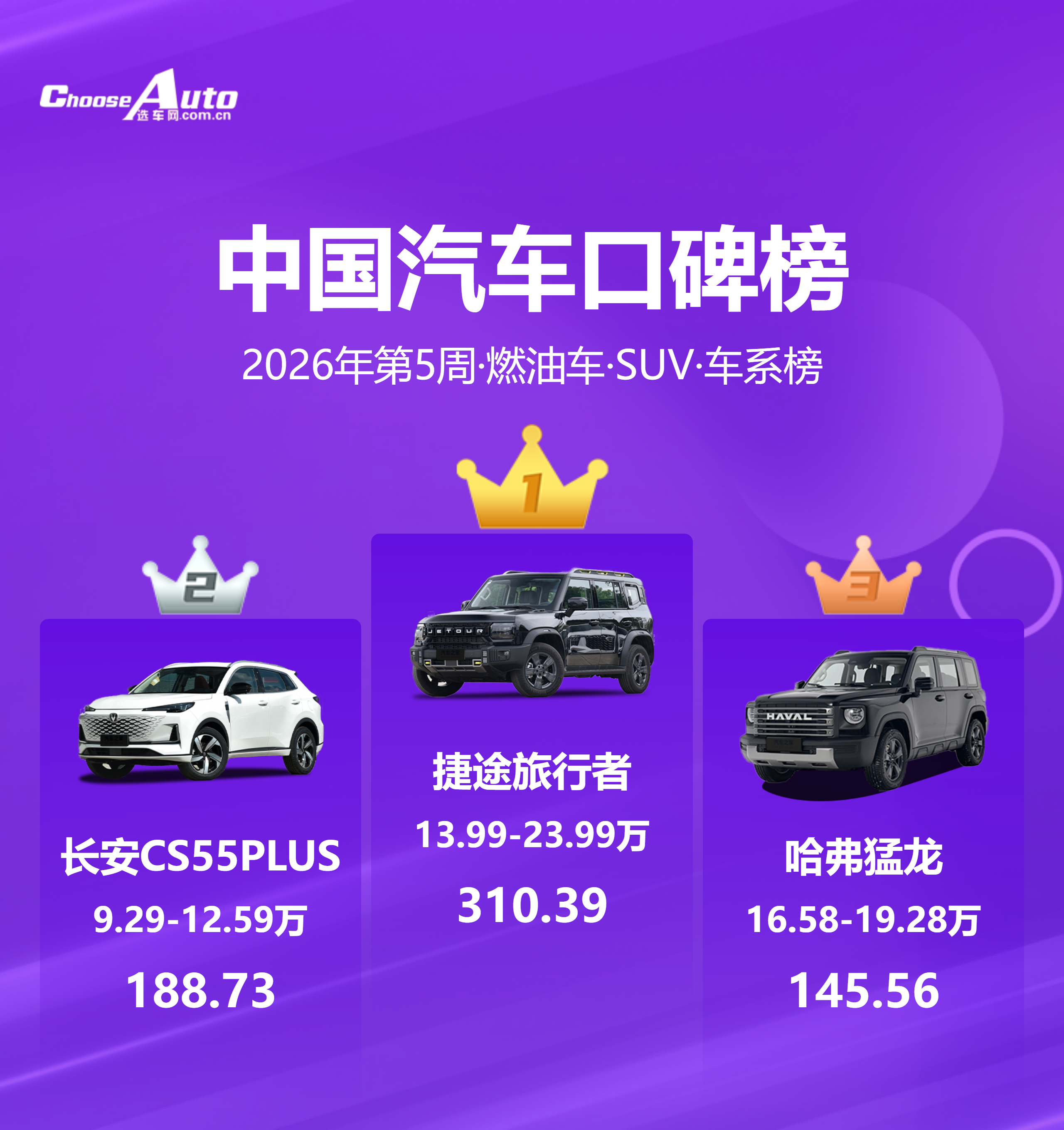 2026第5周燃油车口碑榜出炉:从家用到硬派,用户用脚投票的真实选择